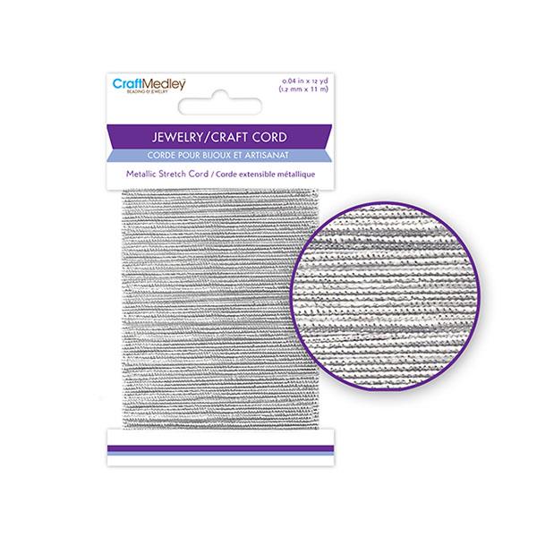 Description: Metallic stretch cord for adding a quality look to jewelry and crafts. Ideal for special occasion crafts. Add a special touch to your gift wrap, treats, gift baskets and more with this stylish stretch cord.