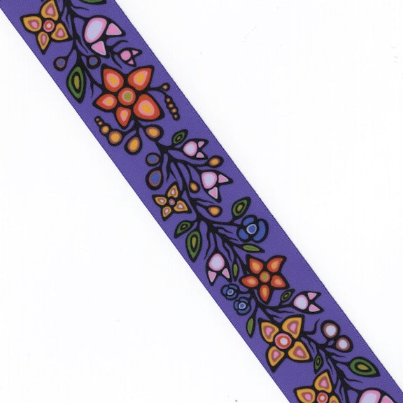Printed Ribbon 1.5 inch Ojibway Florals Purple - Per Yard