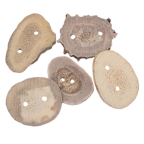 Bring a touch of the North to your projects with our handmade antler buttons, crafted from genuine deer and elk antler. Each piece is cut, shaped, and polished by hand to reveal the natural grain and soft, earthy tones. Strong yet lightweight, the classic two-hole design sews on securely and stands up to everyday wear, making these buttons perfect for knitwear, parkas, cardigans, wool coats, bags, and heritage craft projects. Because every antler is unique, no two buttons are exactly alike—your finished piece will have its own character and story.