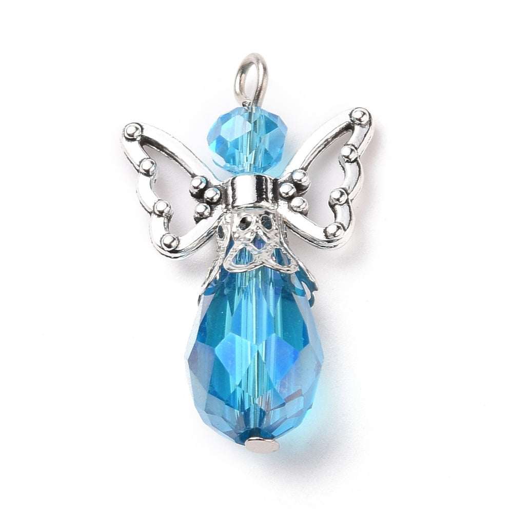 Bring light and protection to your creations with our Beaded Angel Pendant, a delicate design made with sparkling glass faceted beads and silver-tone wings. This angel pendant symbolizes hope, guidance, and love. Perfect for necklaces, zipper pulls, ornaments, or statement earrings, it’s a meaningful piece that adds both beauty and spiritual depth to your jewellery designs.
