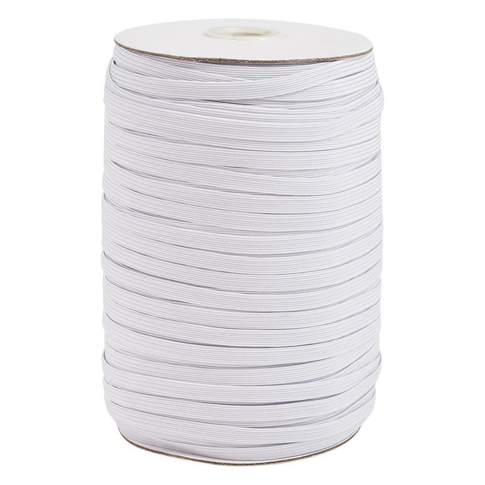 Description: Flat braided fabric heavy stretch knit elastic. Suitable for most craft projects as well as face masks, necklines, sleeves, waistbands, swimwear, and leg bands. This 1/4" wide elastic is lightweight, machine washable, slightly ribbed, and narrows when stretched. This item comes on a 180 yard spool, and is sold by the yard. Measures 5mm wide x 1mm thick.