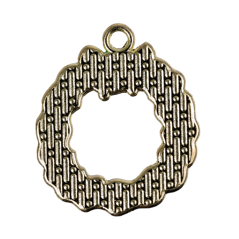 Deck the halls with this wreath pendant—a festive ring of deep green enamel trimmed with gold stars, ribbon swirls, and a jingle-bell bow. The bright, glossy colours pop in holiday designs and make gifting easy. Great on holiday earrings, necklaces and layered chains, or as a cheerful keychain or zipper pull for winter bags. It adds seasonal sparkle and heartwarming spirit to your jewellery creations.