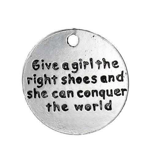 Celebrate confidence and style with this quote pendant engraved with “Give a girl the right shoes and she can conquer the world.” A bold reminder for shoe lovers and go-getters, it’s perfect as a focal necklace, layered with charms, or styled as a keychain or zipper pull. It adds empowering character and motivating meaning to your jewellery creations.