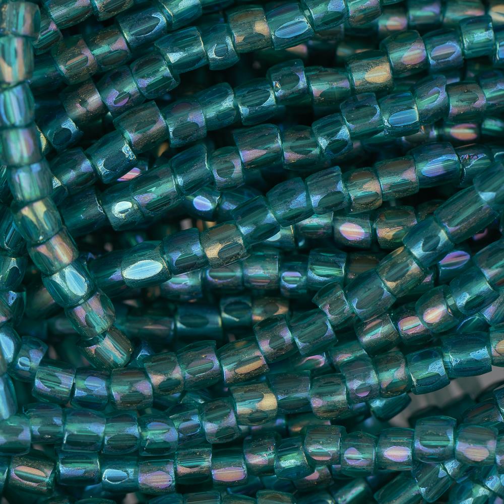 10/0 Czech 3 Cut Seed Beads Transparent Iris Green Hank