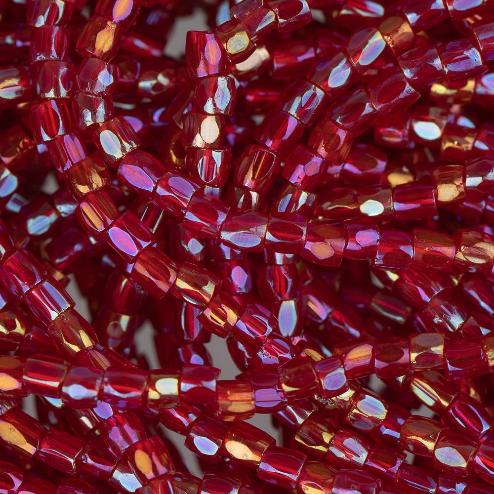 10/0 Czech 3 Cut Seed Beads Transparent Iris Red Hank
