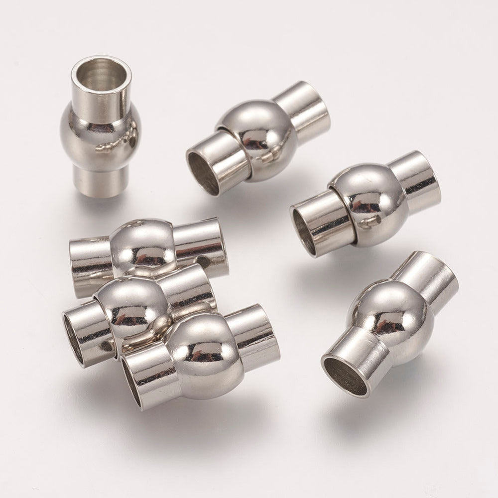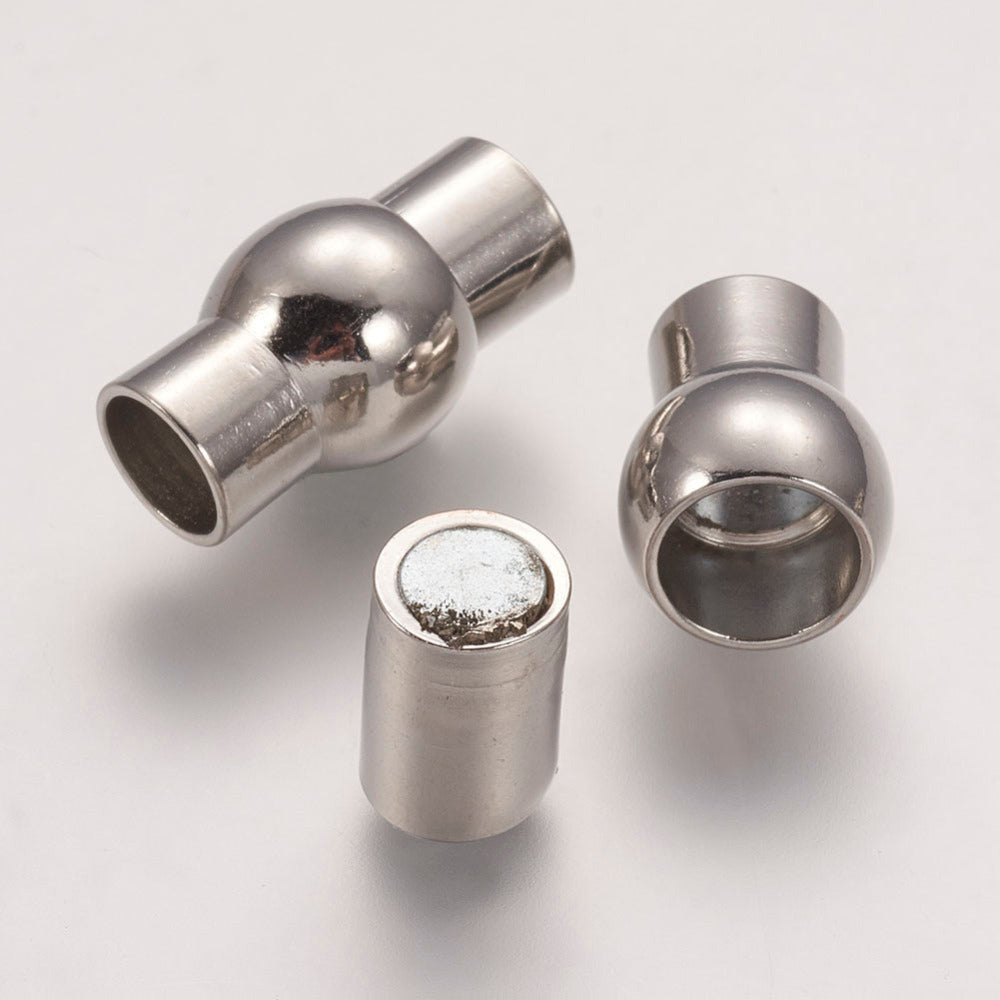 Description: Plated brass oval magnetic clasp. Nickel free. Measures 17mm long, 10mm wide, hole: 6mm.