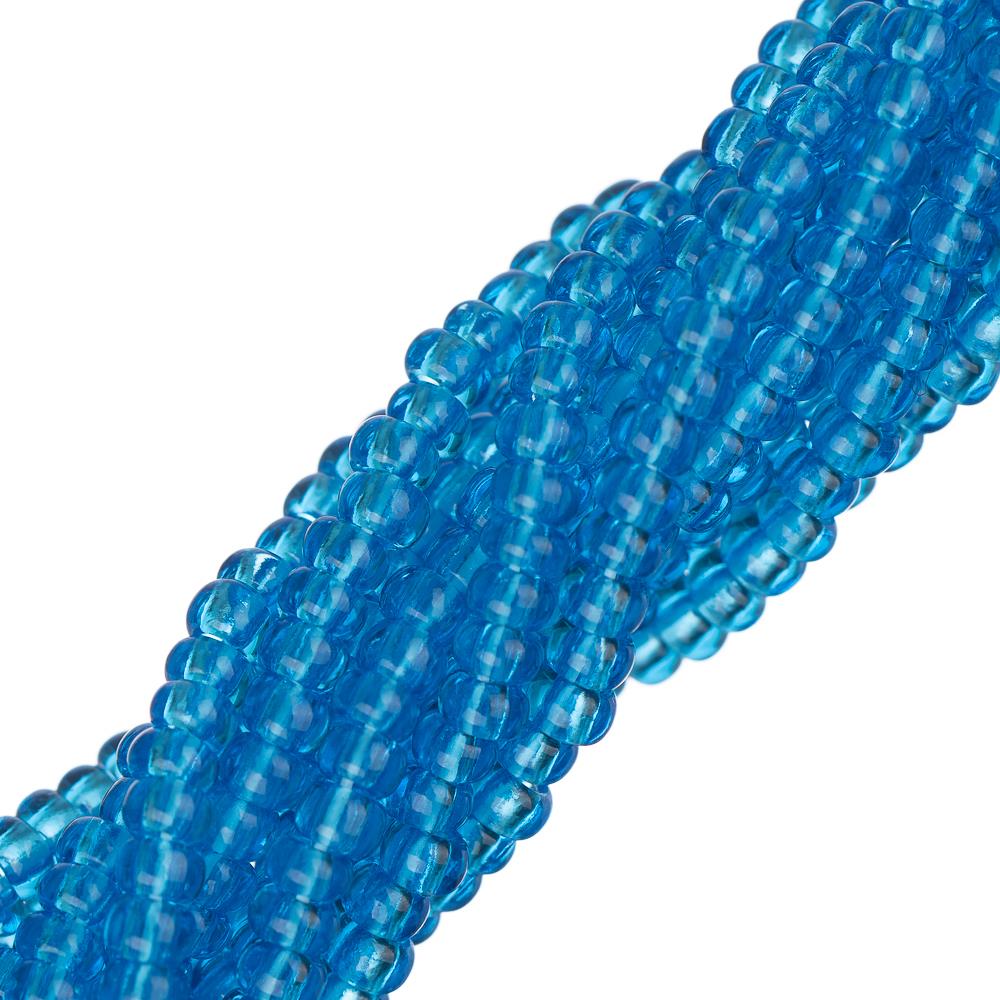 11/0 Czech Seed Beads #34936 Transparent Medium Aqua 6 Strand Hank