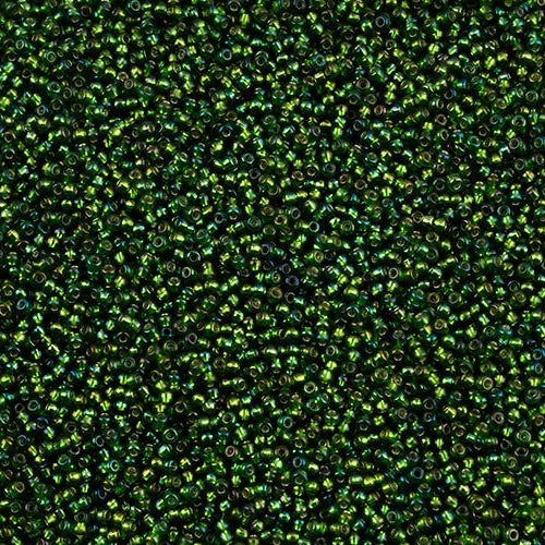 11/0 Czech Seed Beads #43206 Silver Lined Rainbow Green 24g