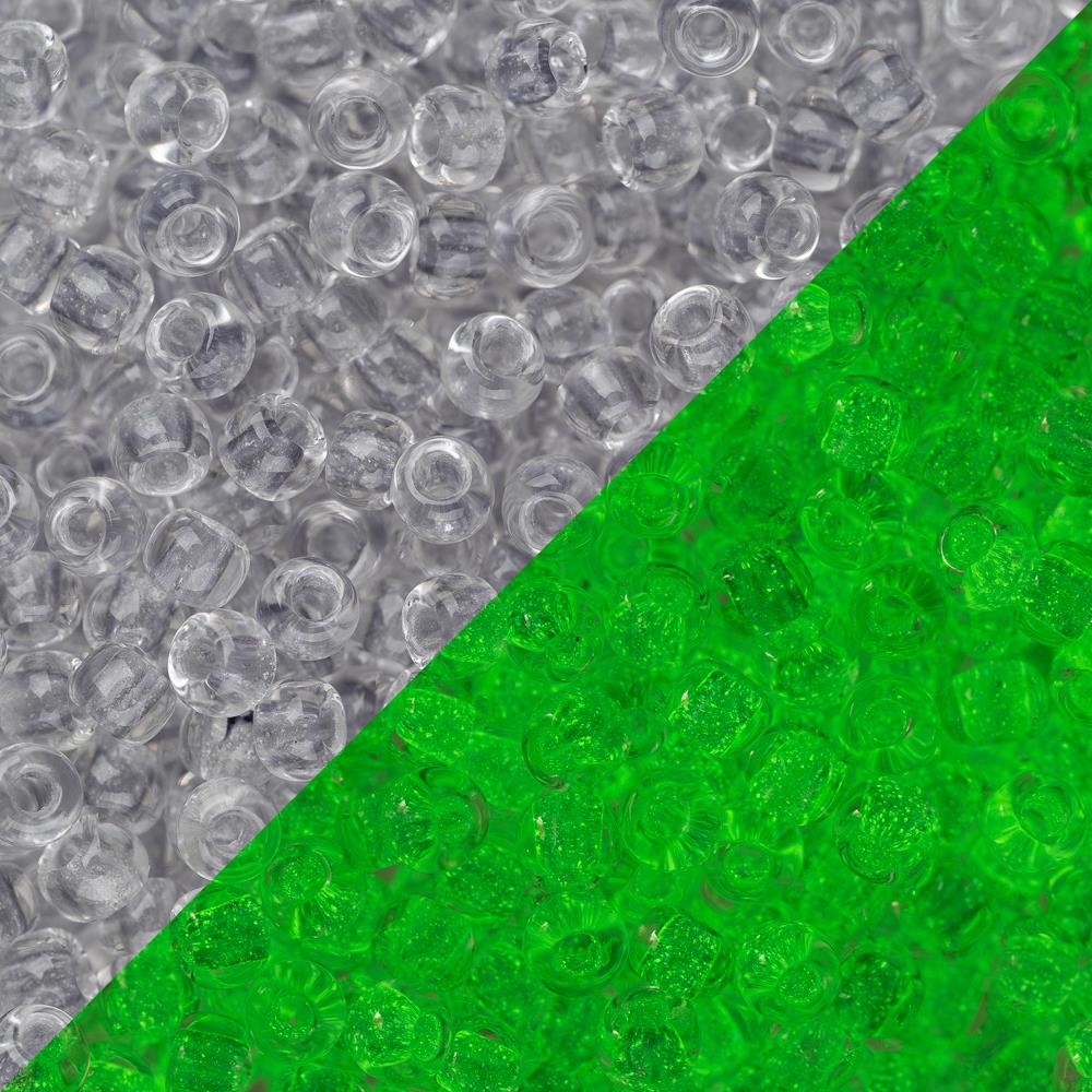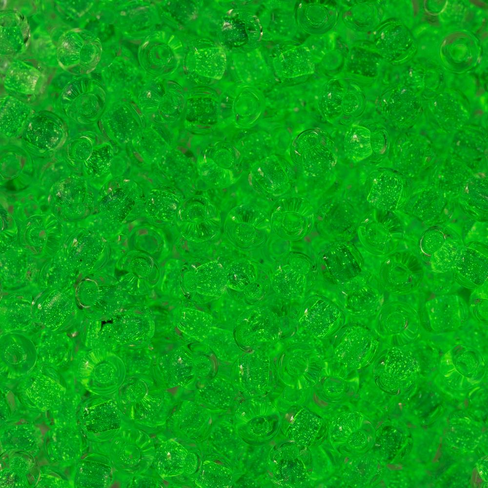 11/0 Toho Seed Beads #2725 Grey Crystal / Bright Green 8-9g Vial