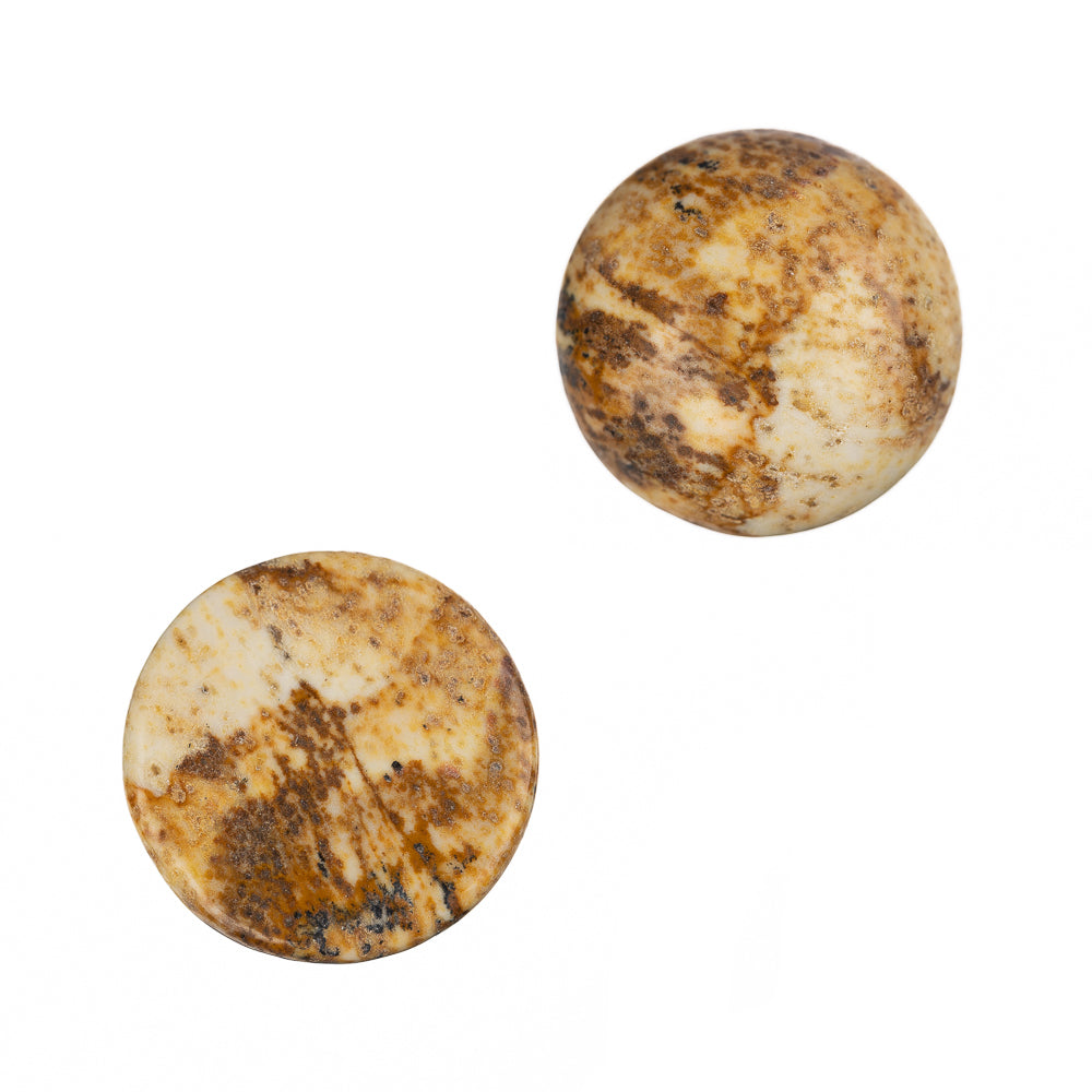 Description: Natural picture jasper gemstone cabochons. Used for making beaded earrings, pendants, and more. This item measures 12mm wide x 12mm long x 5mm thick. No two gemstones will be exactly alike because each one has its own unique combination of pattern and color.