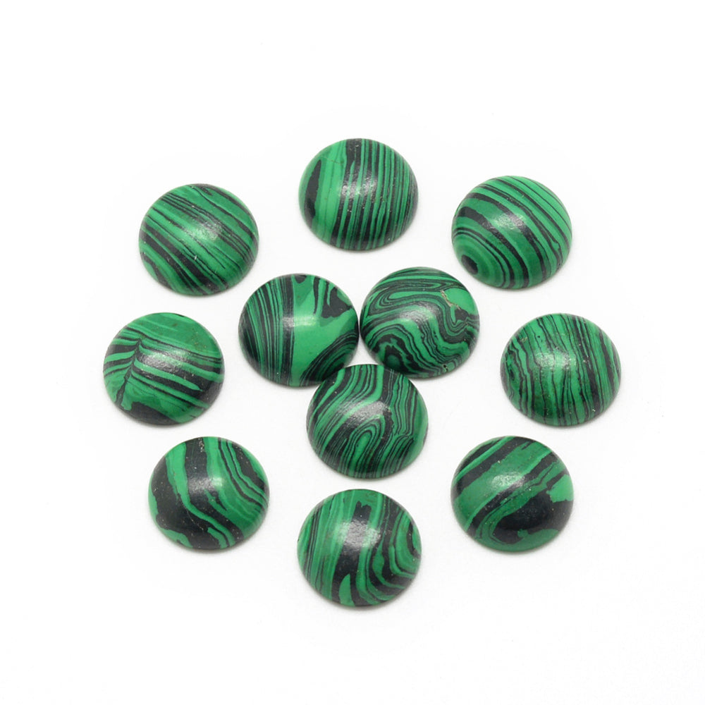 Gemstone Cabs, Round 12mm Malachite (Synthetic/Dyed) 2/pk