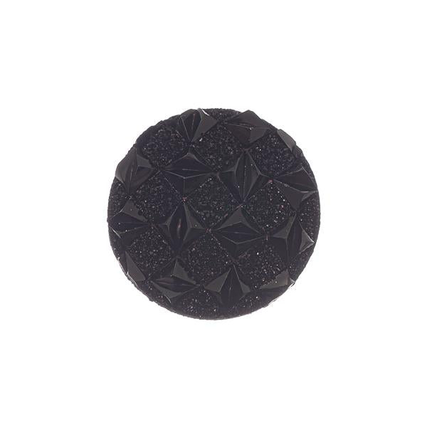 Description: Opaque resin round flat back cabochon. Measures 12mm.
