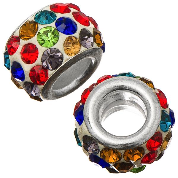 European Rhinestone Beads 12mm White Colourful 5/pk