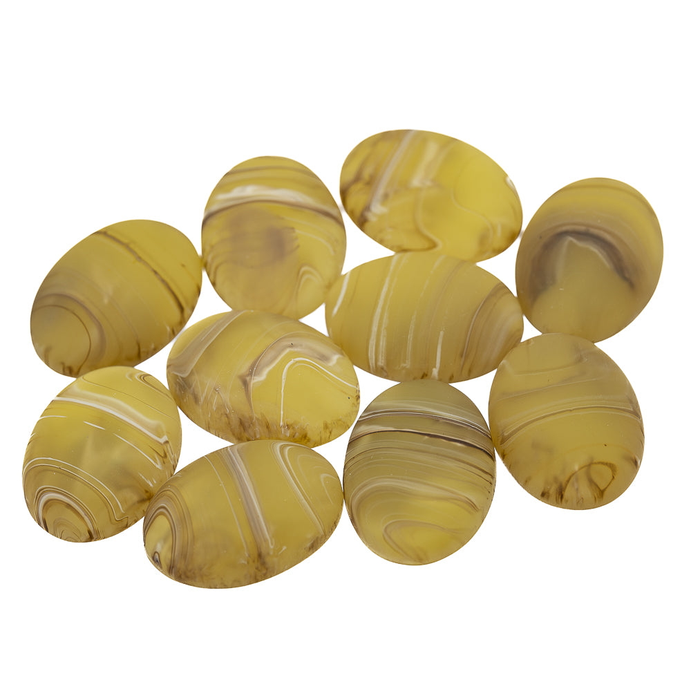 These cabochons combine the timeless elegance of marble veining with a soft, muted finish for a refined, contemporary accent. Each piece is expertly shaped into an oval shape with a flat back for effortless adhesion to settings, frames, or any craft surface. These featherlight resin accents offer lasting durability, making them ideal for sophisticated pendants, striking earrings, bespoke phone cases, and beyond.