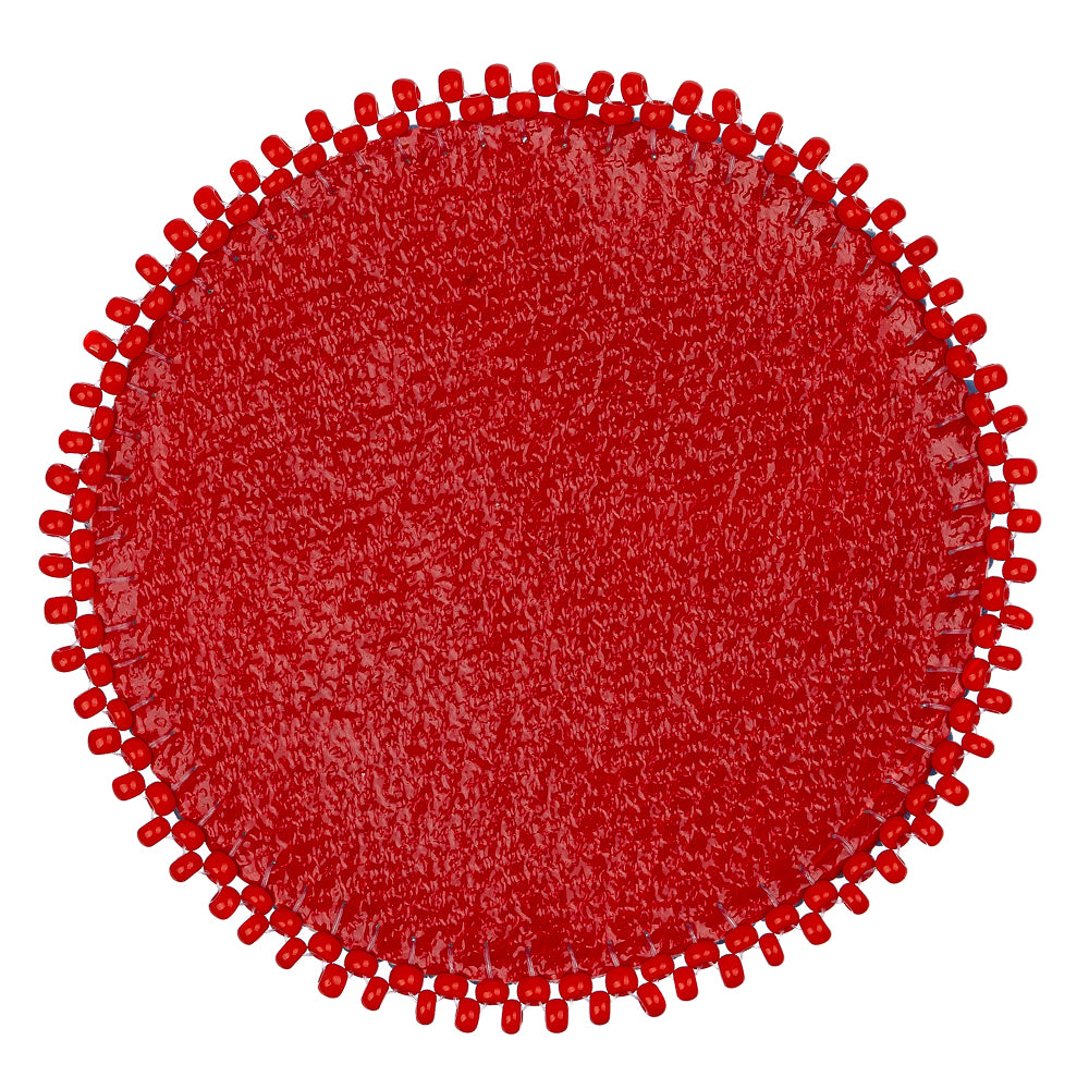 Description: Beaded rosette with leather backing. Ideal for use on native crafts such as mitts, moccasins, pouch or purse, garments, regalia, hair ties or barettes, and bolo ties. Imported.
