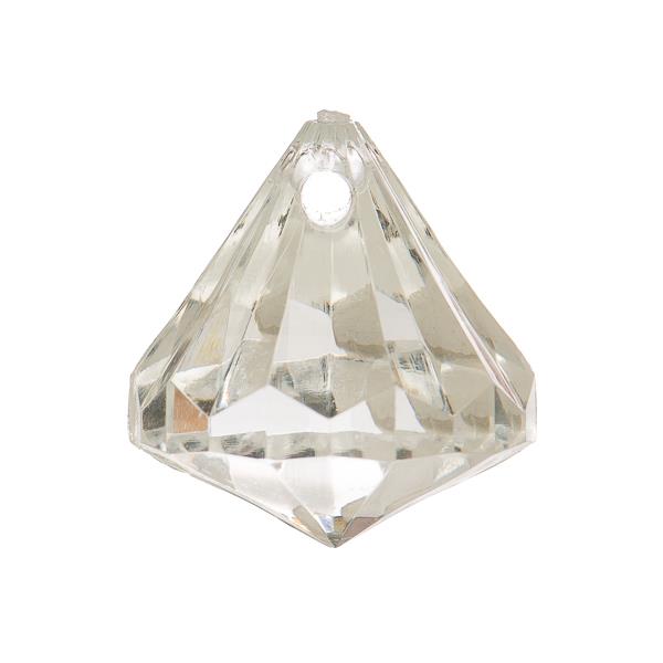 Description: Acrylic teardrop facetted pendant with 3mm top hole. 23mm wide x 26mm long x 10mm thick.