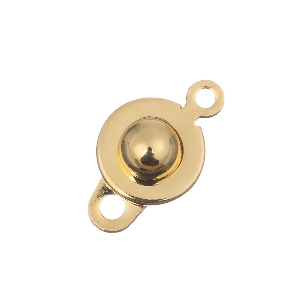 Description: Trailer hitch style button clasp. Easy on/off with a secure closure. Small size for bracelet and lightweight necklace designs. Size: about 9mm wide, 15mm long, 5mm thick, 1.5~1.8mm. 201 Stainless Steel Snap Clasps, Real 24k Gold Plated.