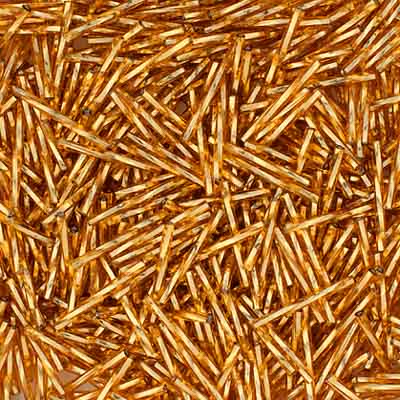 25mm Twisted Czech Bugle Beads Silver Lined Gold 25g Bag