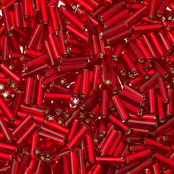 #3 Czech Bugle Beads Silver Lined Red 25g Bag