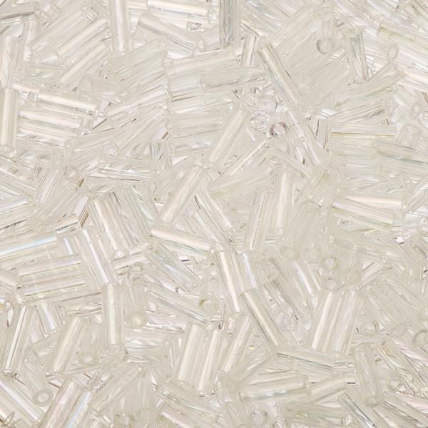 #3 Czech Bugle Beads Transparent Crystal Iris 25g Bag