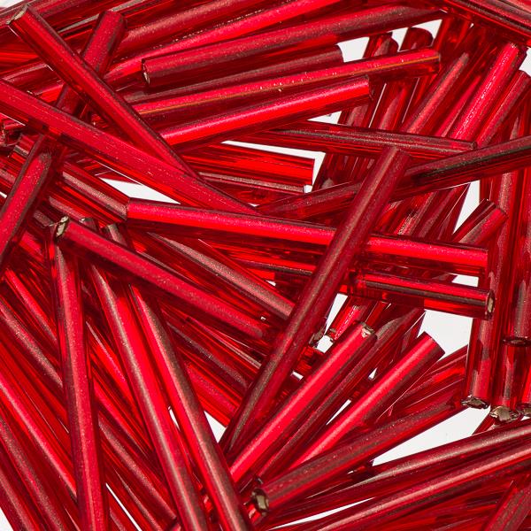 30mm Straight Czech Bugle Beads Silver Lined Red 25g Bag