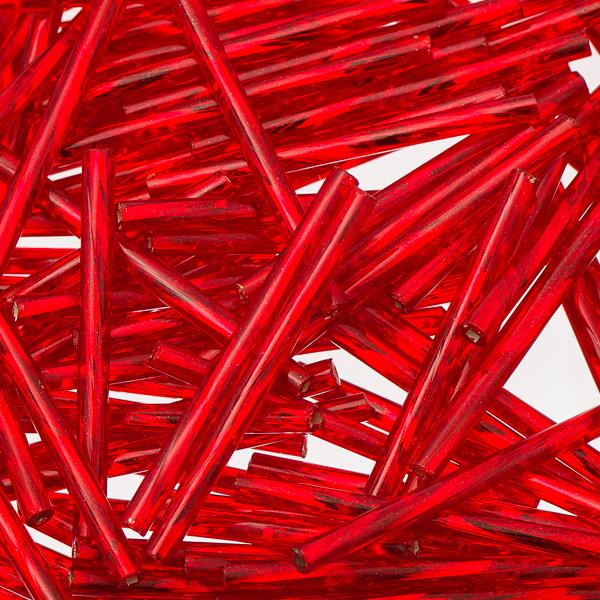 30mm Twisted Czech Bugle Beads Silver Lined Red 25g Bag