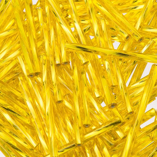 30mm Twisted Czech Bugle Beads Silver Lined Yellow 25g Bag