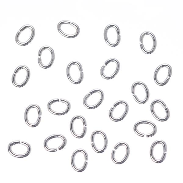 Description: Oval jump rings. 4mm x 5mmmm outside diameter, 21 gauge. Nickel free, Lead free.