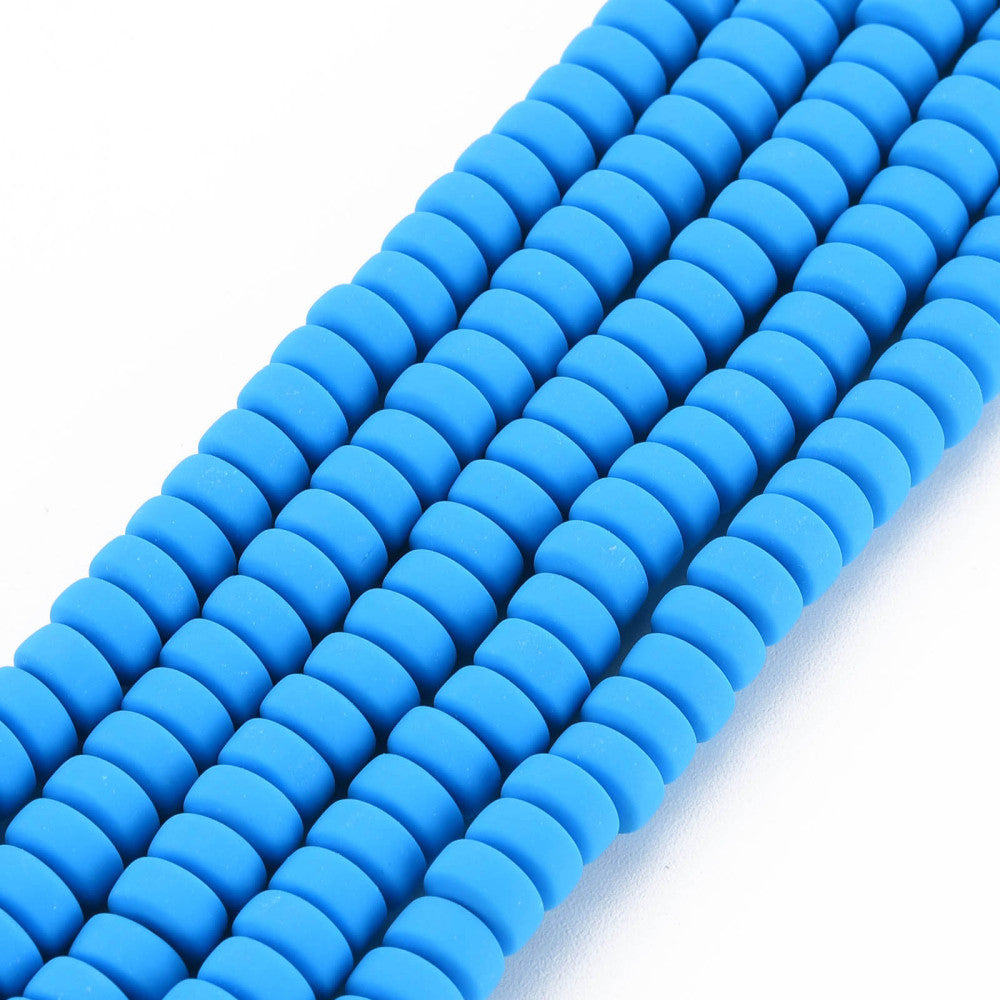 Description: Handmade Polymer Clay Beads. Round with flat sides. Measure about 6mm wide x 3mm thick, 1.5mm hole. Sold by the strand.