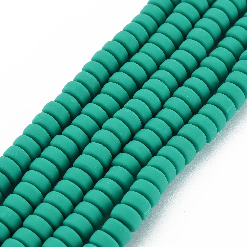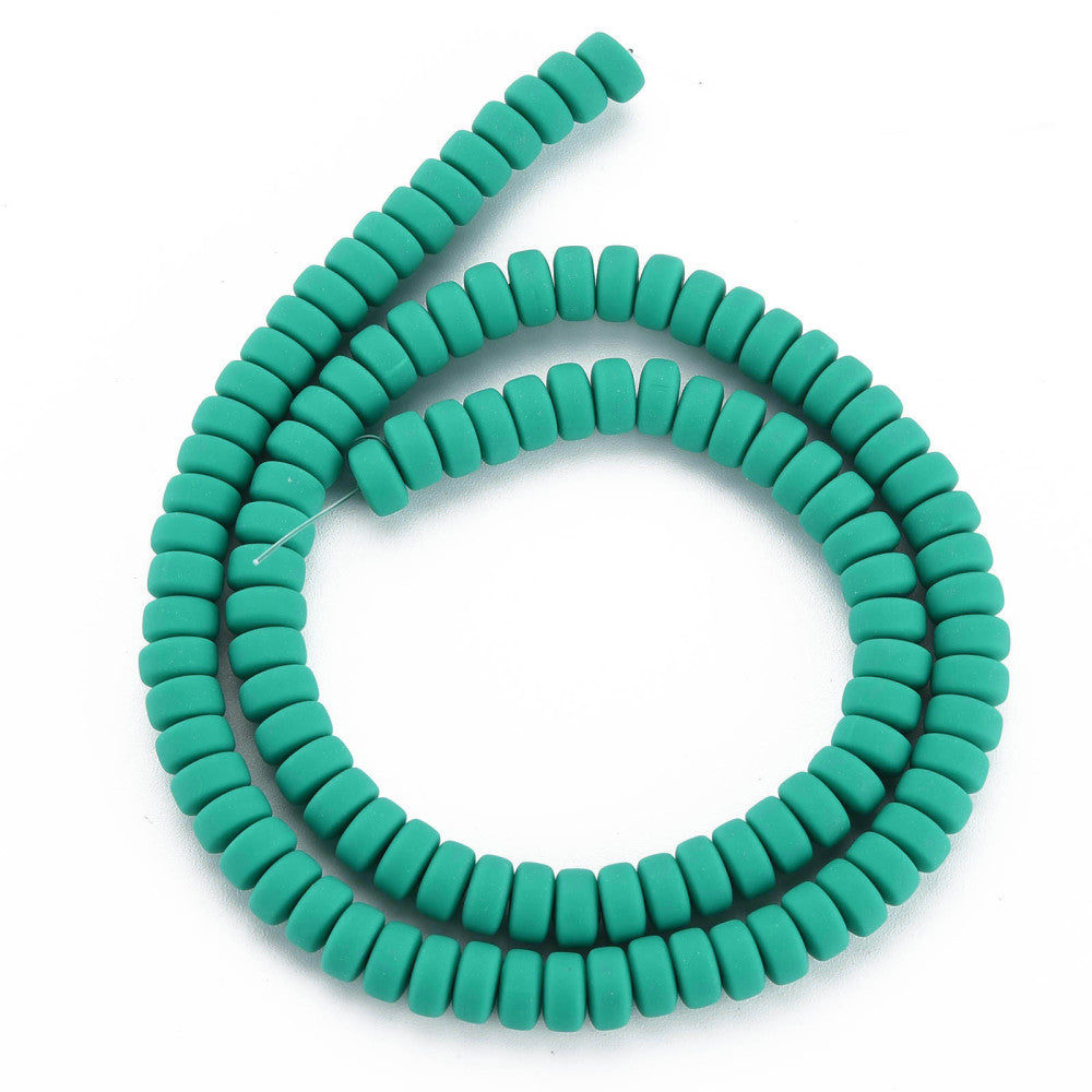 Description: Handmade Polymer Clay Beads. Round with flat sides. Measure about 6mm wide x 3mm thick, 1.5mm hole. Sold by the strand.