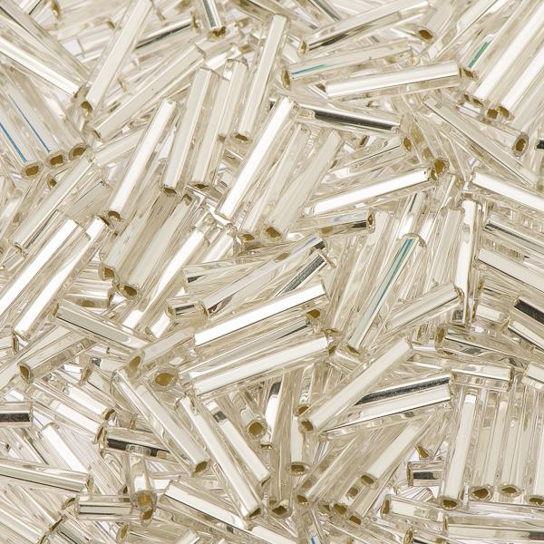 #5 Czech Bugle Beads Silver Lined Crystal 25g Bag