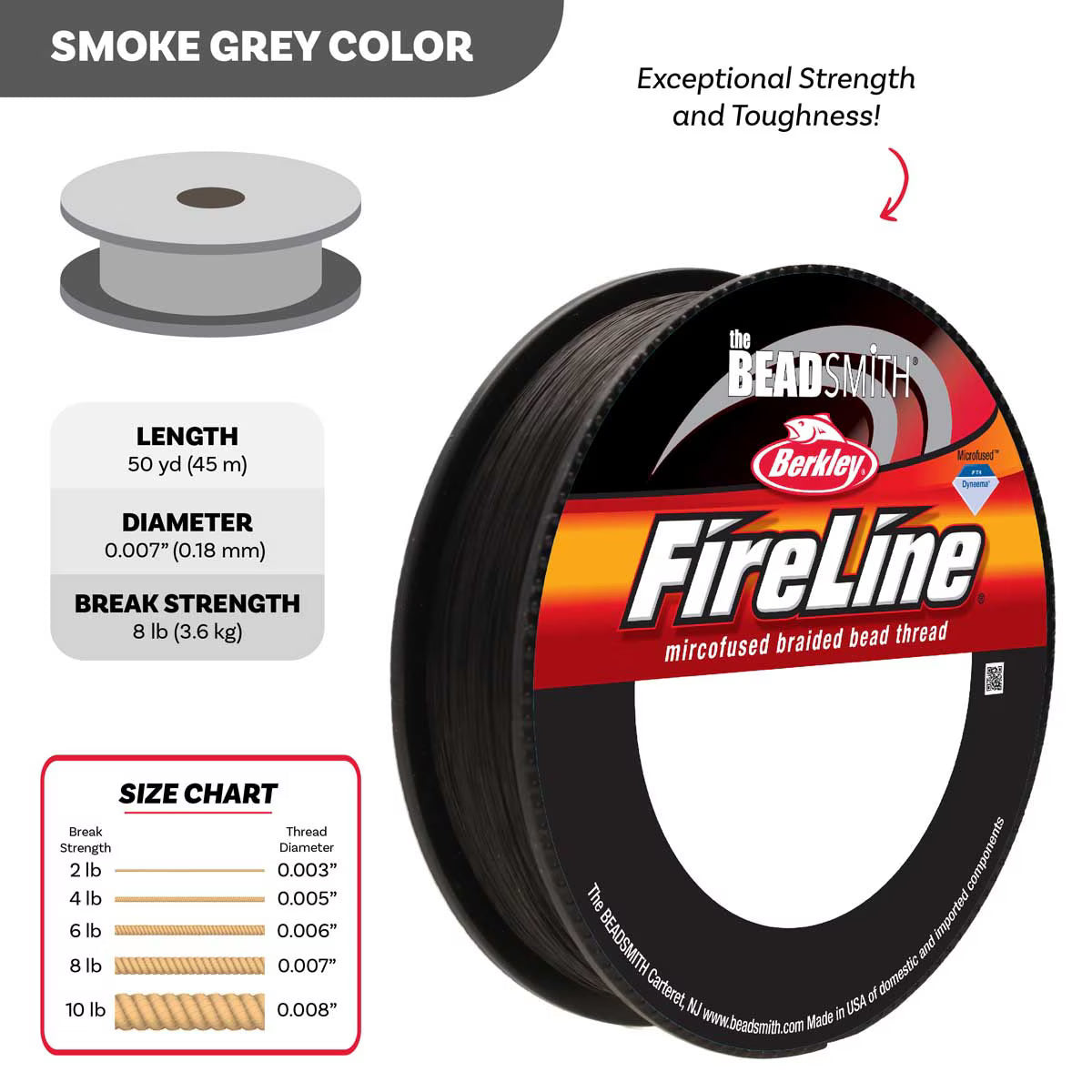 Fireline 6lb offers added strength while maintaining a fine profile, making it perfect for medium-detailed beadwork or projects requiring more tension support. Diameter is approximately 0.15 mm.