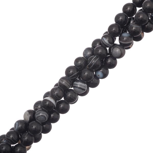 Striped Agate Black Beads 6mm Round Grade A (Natural/Dyed) 15-16" Strand