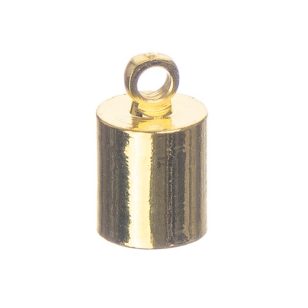 Description: Add a professional finish to your jewelry. Add a dab of glue inside the bead cap and push in the end of your leather, material or chain, allow to dry, add a clasp and you have a nicely finished piece of jewelry. Measures 6mm wide, 9.5mm long, hole: 1.1mm; 5.5mm inner diameter. Plated brass.