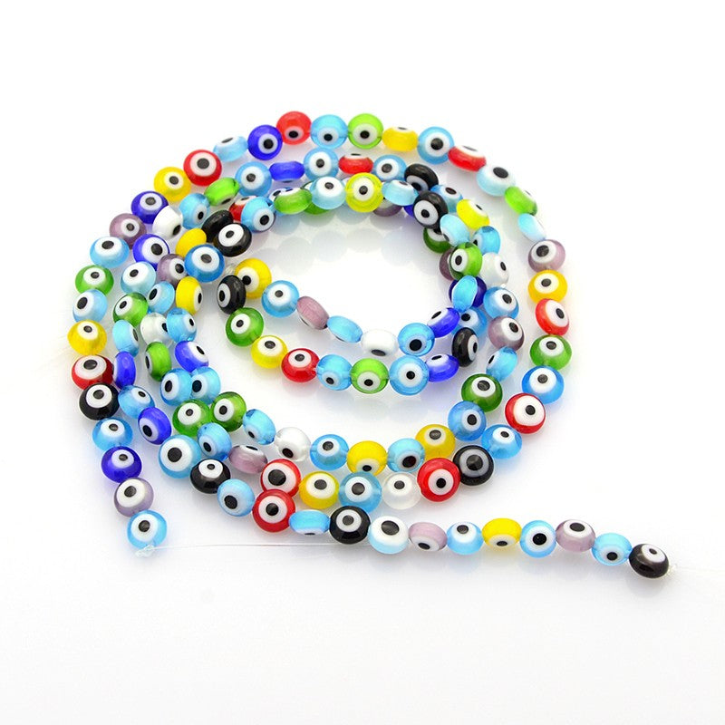 Evil Eye Flat Round Glass Beads 6x4mm Multi Mix 15" Strand