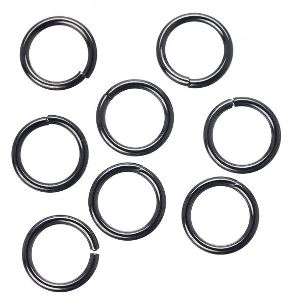 Description: 18 gauge plated brass unsoldered jump rings. 8mm outside diameter x 1mm thick.