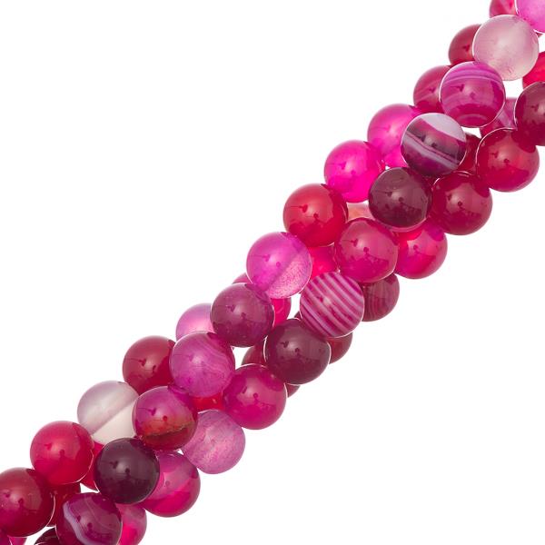 Striped Agate Fuchsia Beads 8mm Round (Natural/Dyed) 15-16" Strand