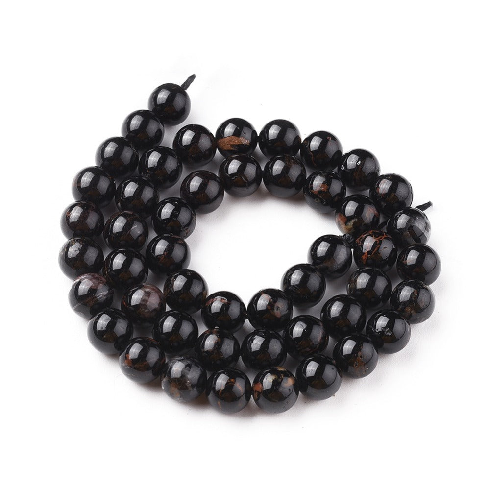 With their glossy jet-black finish and subtle natural inclusions, these beads carry a bold, protective energy. Black Tourmaline is one of the most powerful grounding stones, long believed to shield against negativity and encourage inner stability. Their sleek, polished look makes them perfect for creating jewellery that feels both modern and deeply protective. Slight variations in colour, size, and markings are to be expected, adding to their one-of-a-kind appeal.