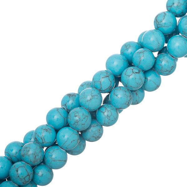 These polished round beads display a bright sky-blue colour with subtle dark veining, enhanced through dyeing to achieve their vivid and consistent tone. Their smooth finish and striking hue make them ideal for bold, modern jewellery or as colourful accents in bohemian designs. While man-made, they capture the fresh appeal of natural turquoise and bring a lively touch to any piece. Slight variations in colour, size, and markings are to be expected, adding to their one-of-a-kind appeal.