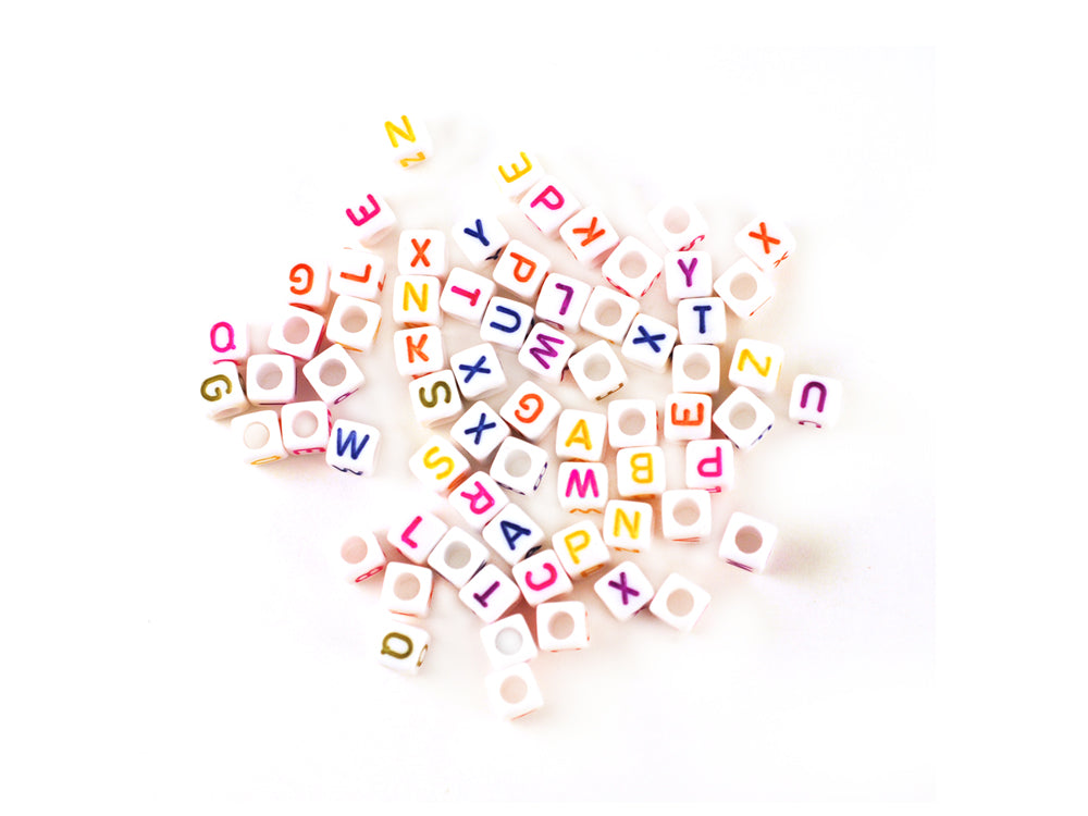 Add a fun and personal touch to your crafts with these Alphabet Cube Beads, perfect for spelling out names, words, or messages. These classic beads are ideal for making custom bracelets, necklaces, keychains, and other DIY projects. Whether you're creating gifts, classroom crafts, or unique accessories, their smooth cube shape and bold lettering make them easy to read and simple to string. Great for kids and adults alike, these assorted alphabet beads bring creativity and charm to every project.