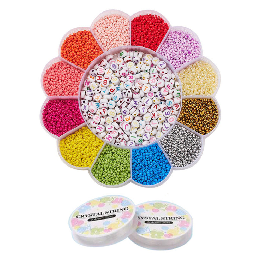 Description: Alphabet & Seed Beads Bracelet Making Kit includes acrylic letter beads, glass seed beads beads and clear elastic cord.
