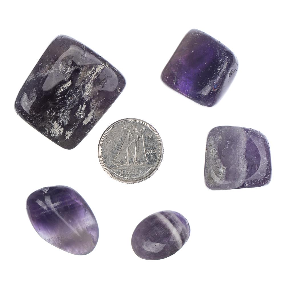 Description: This amethyst from India is mainly of the darker variety and the stones are smaller than our regular amethyst stones. Amethyst is the purple variety of quartz crystal composed of silicon dioxide with traces of iron.