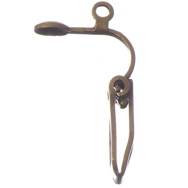 Description: Brass Clip-on Earring Component with loop, for non-pierced ears. Nickel Free. About 6mm wide, 13mm long; 10mm thick; hole: 1mm