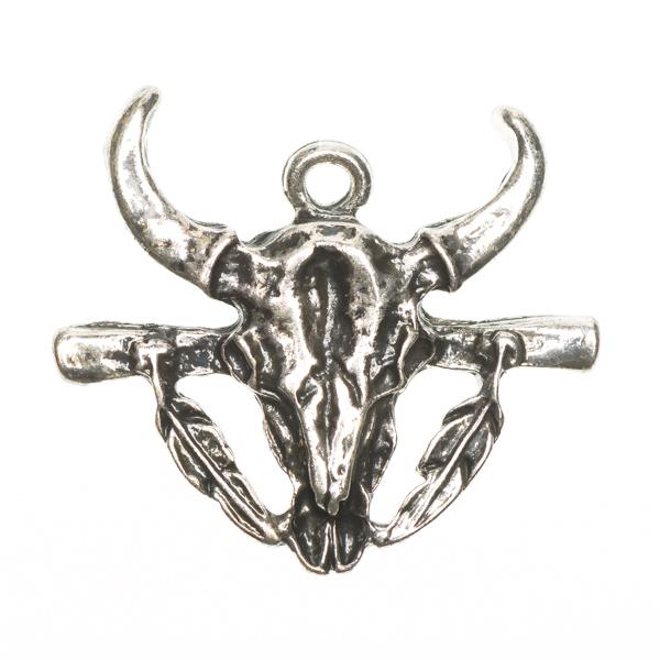 Channel resilience and tradition with our Bull Skull Pendant, a bold design featuring detailed horns, crossbars, and feather accents. Symbolizing strength, protection, and a deep connection to nature, this pendant is perfect for necklaces or statement jewellery. A striking piece, it adds rugged character and cultural depth to any creation.