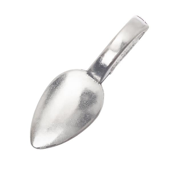 Description: Plated alloy metal bail glues onto back of pendant with "P" shaped loop sitting centered on top of pendant. For use on flat back pendant. Nickel free, Lead free, Cadmium free.