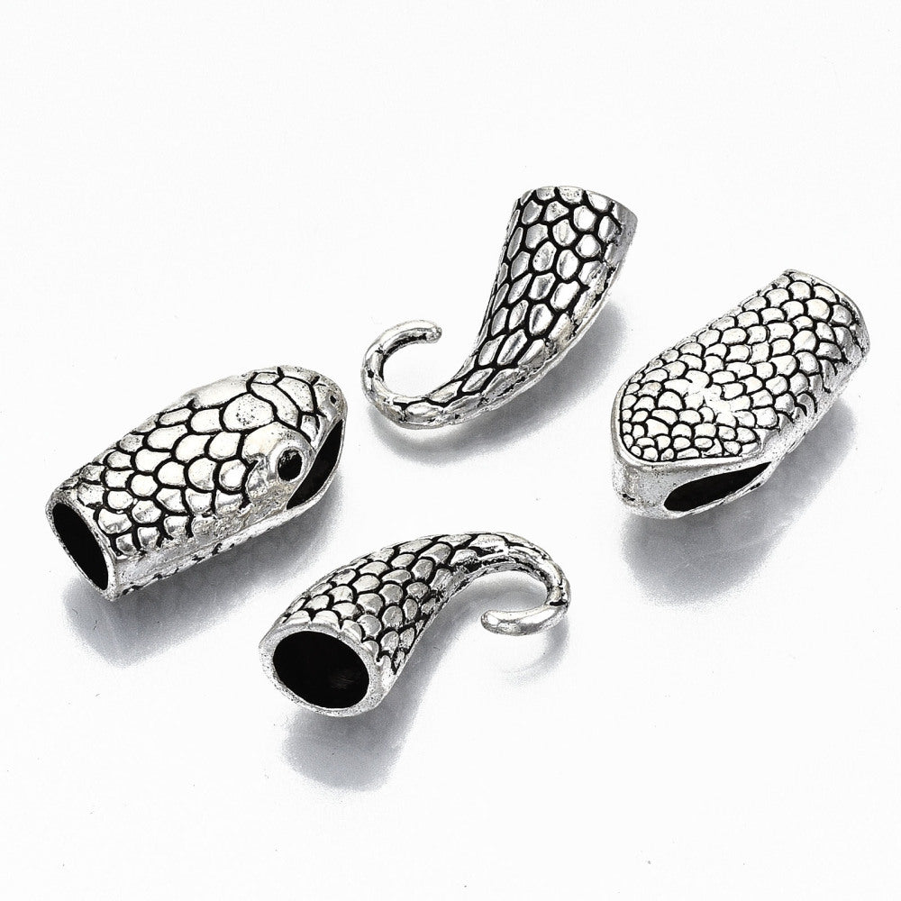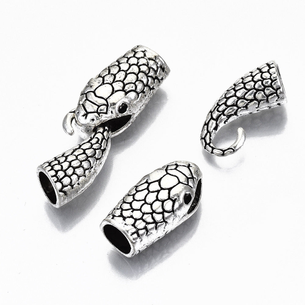 Description: Decorative metal hook & eye clasp. Hook measures about 12mm x 23mm x 9mm, Eye: about 19mm x 9mm, hole: 7mm. Zinc Alloy. Lead free, Cadmium free.