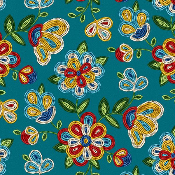 This cotton fabric bursts with stunning beaded floral designs, celebrating growth, renewal, and cultural artistry with blossoms that seem alive with tradition. Its lightweight, versatile weave makes it ideal for ribbon skirts, regalia accents, shawls, and star quilts, while also lending itself beautifully to tote bags, table runners, and wall hangings that brighten any space with meaning. Sold by the half yard; multiple quantities are sold in one continuous cut. Pre-wash and dry before sewing to prevent shrinkage. Machine wash cold with like colours; tumble dry low; warm iron.