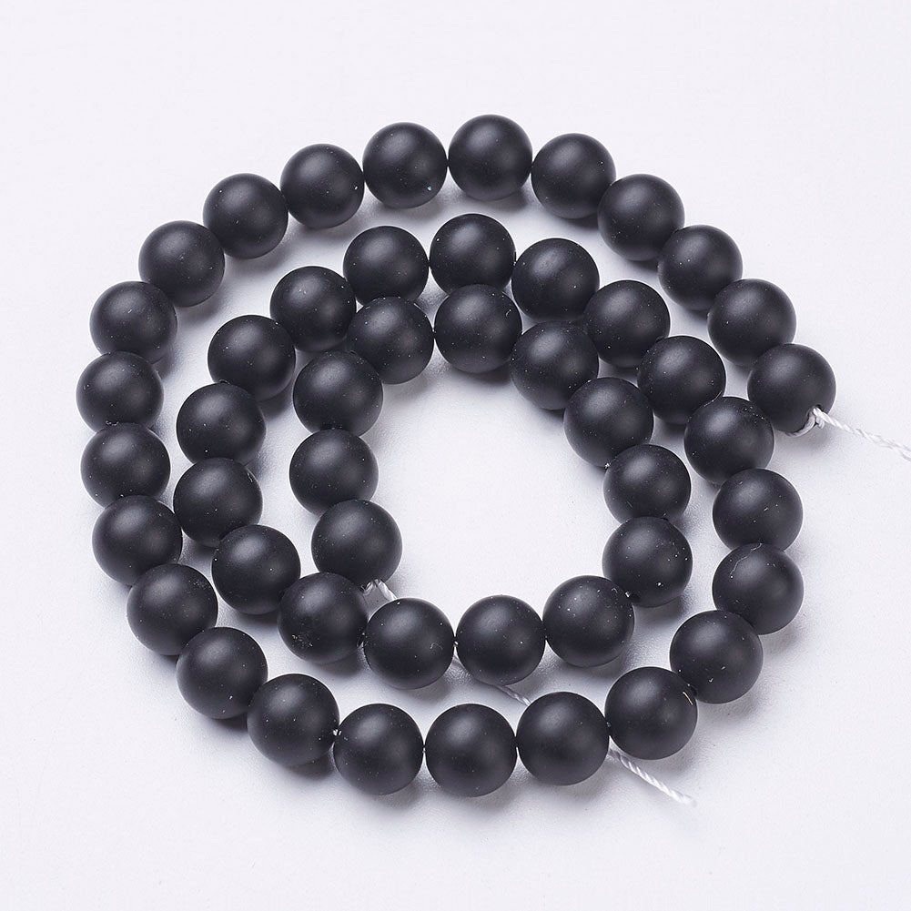 Black Agate Frosted Beads 8mm Round Grade A (Natural/Dyed) 15-16" Strand
