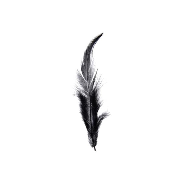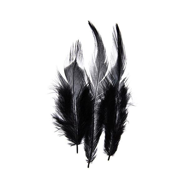 Description: Cleaned & sanitized black rooster saddle hackle body feathers. These feathers have many uses: earrings, costumes, fly tying, native crafts....