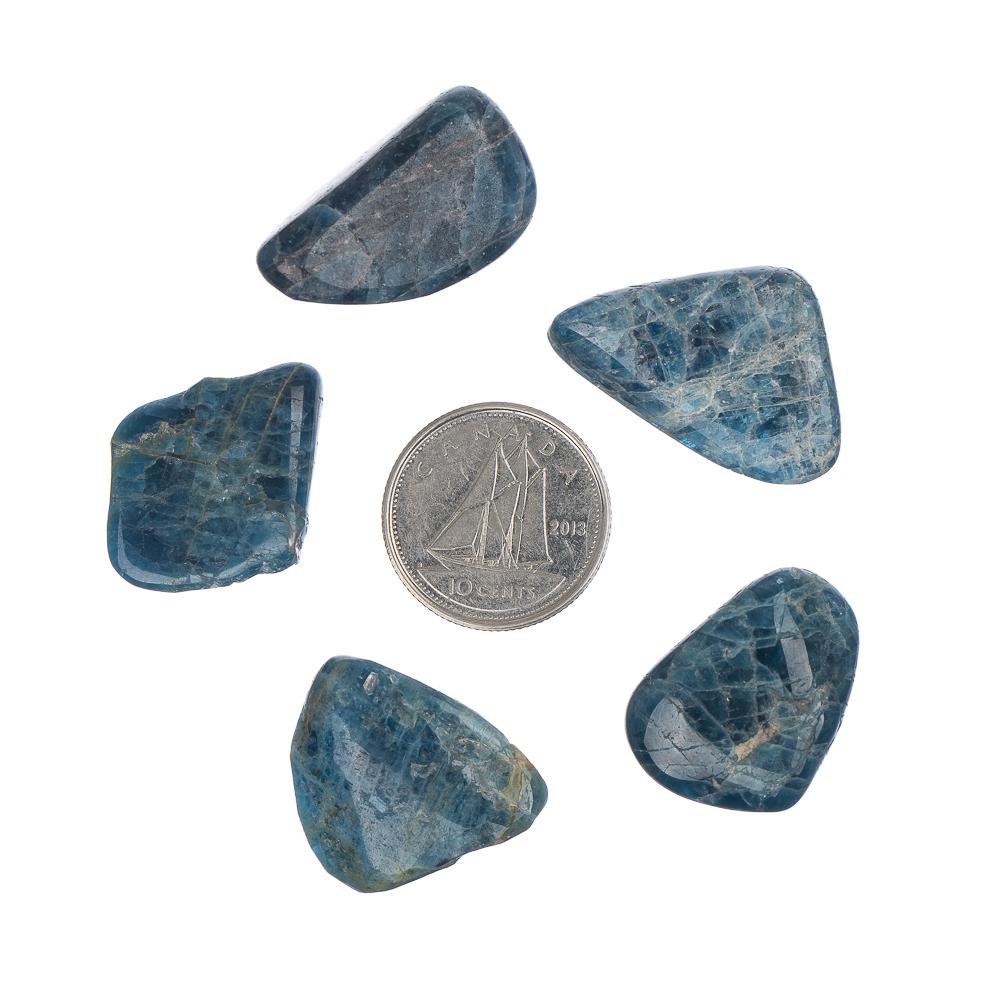 Description: The name of this soft deep aqua coloured stone originates from the Greek "to deceive’ since it was often mistaken for other minerals. Apatite is composed of calcium phosphate, which is the same material that makes up human and animal teeth and bones.